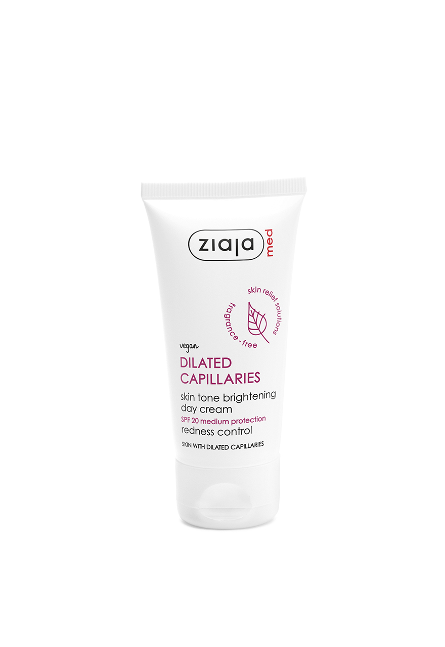 Ziaja Med – Krem łagodząco-rozświetlający SPF 20 na rozszerzone naczynka 50 ml, Ziaja Med – Soothing & brightening cream SPF 20 for dilated capillaries 50 ml, Ziaja Med – Заспокійливий і освітлюючий крем SPF 20 для розширених капілярів 50 мл, Ziaja Med – Umirujuća i posvjetljujuća krema SPF 20 za proširene kapilare 50 ml, Ziaja Med – Zklidňující a rozjasňující krém SPF 20 na rozšířené kapiláry 50 ml, Ziaja Med – Успокаивающий и осветляющий крем SPF 20 для расширенных капилляров 50 мл, Ziaja Med – Uspokaivayushchiy i osvetlyayushchiy krem SPF 20 dlya rasshirennykh kapillyarov 50 ml